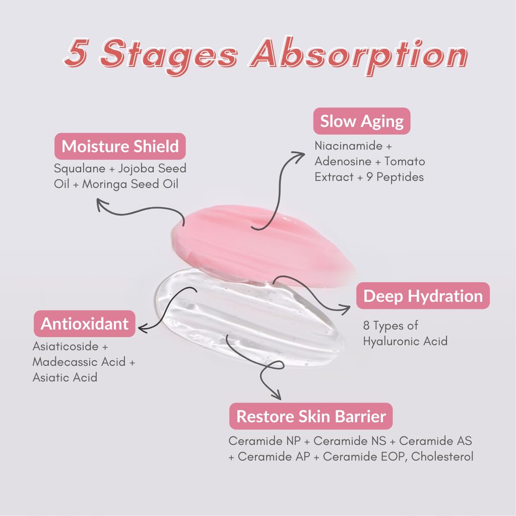 - 💧DEEP HYDRATION CARE: Multiple low molecular weights of Hyaluronic Acid lock in moisture, plumps the skin, leaving it soft, hydrated and dewy.